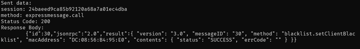 To prove we are able to send arbitrary web panel requests to the router, we can send a HTTP request to add MAC address DE:AD:BE:EF:10:01