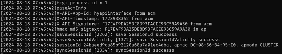 [TIMESTAMP]sessionId ADM_TKN, apmac MAC_ADDR, apmode APMODE
